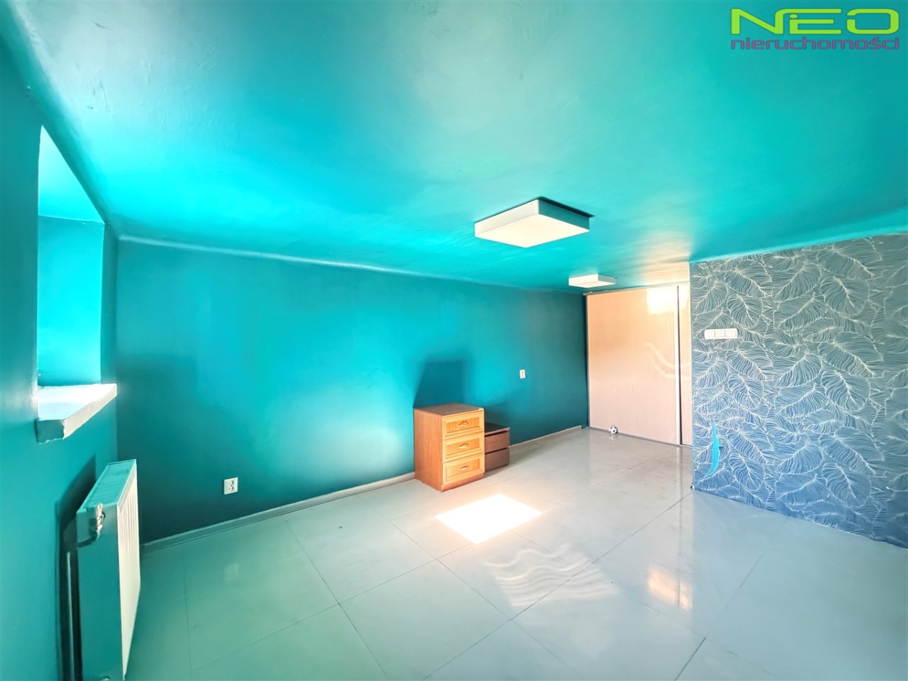 Suterena – sypialnia z wydzielonym biurem i kotłownia,