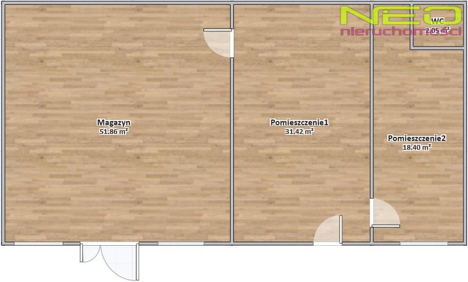 - magazynu 55,86 m2 (szerokie drzwi magazynowe)