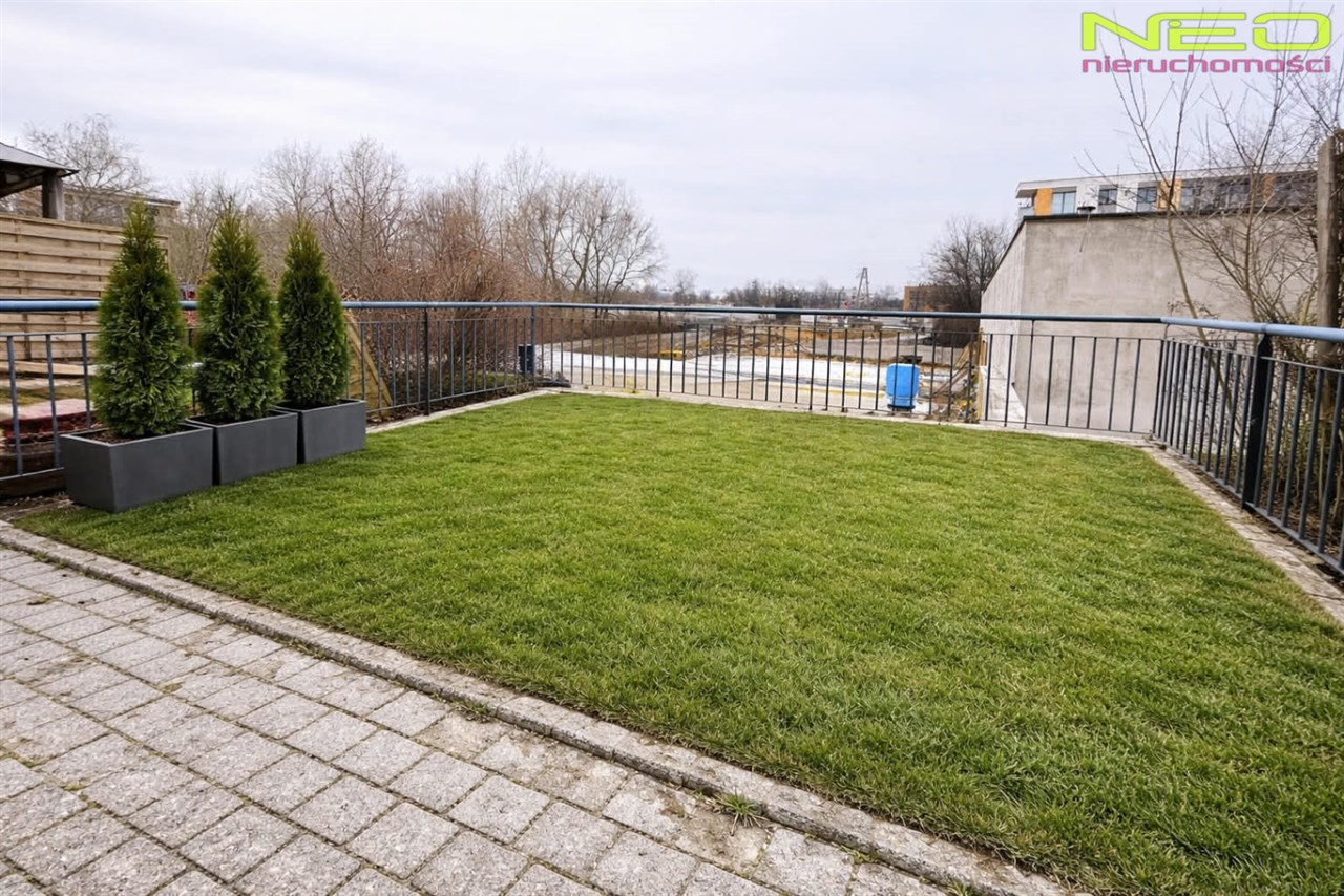 Wyjątkowym atutem nieruchomości jest taras z własnym ogródkiem, stanowiący idealną przestrzeń do wypoczynku.