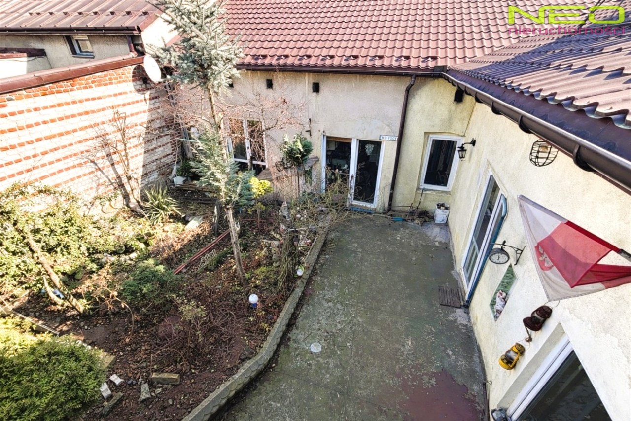 Nieruchomość znajduje się na działce o powierzchni ok 400 m2 i posiada dwa osobne wejścia, co daje możliwość podziału na oddzielne lokale mieszkalne lub połączenia funkcji mieszkalnej z wynajmem.