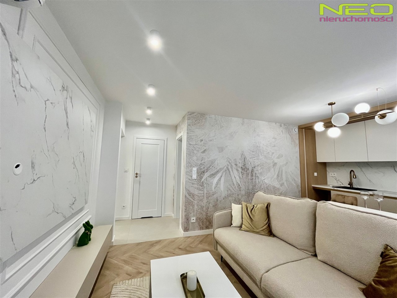 Mieszkanie o powierzchni 55,7 m² znajduje się w czteropiętrowym bloku po termomodernizacji i zostało wykończone pod nadzorem architekta wnętrz, z dbałością o funkcjonalność oraz estetykę.